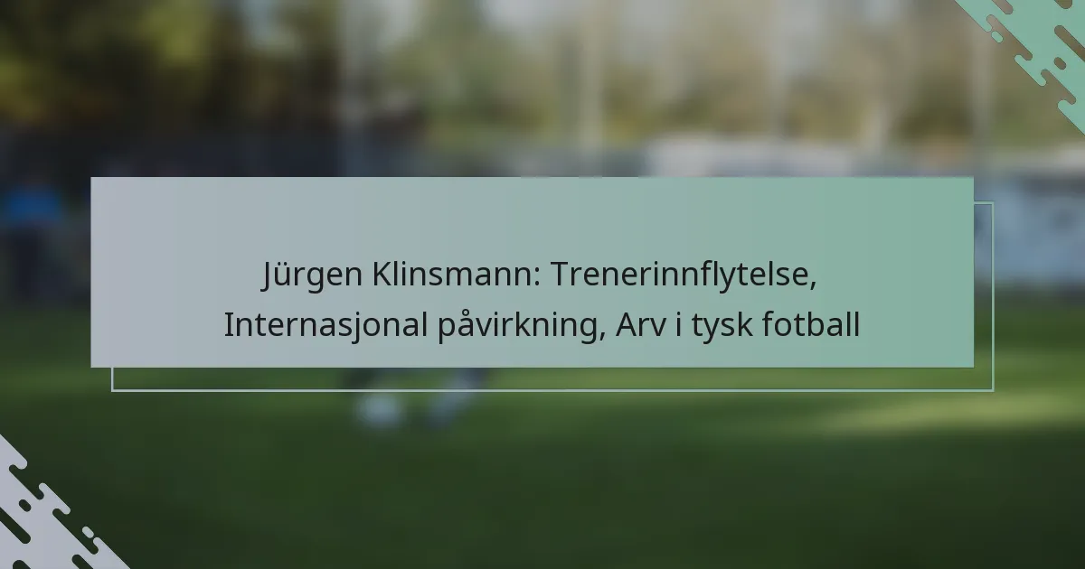 Jürgen Klinsmanns trenerinnflytelse i fotball er preget av hans innovative strategier og vektlegging av spillerutvikling. Hans tilnærming har betydelig formet moderne trenerpraksis, spesielt i tysk fotball, hvor hans arv fortsatt resonerer.