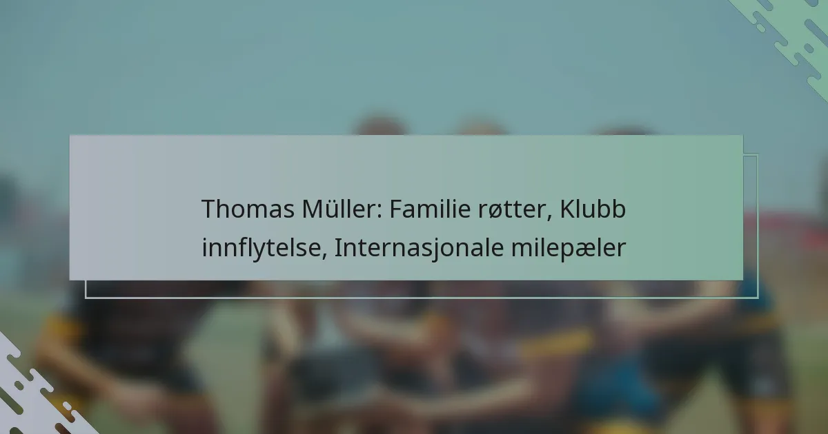 Thomas Müller, som kommer fra Weilheim i Tyskland, har bygget en bemerkelsesverdig fotballkarriere preget av sin støttende familie og tidlige påvirkninger. Som en nøkkelspiller for Bayern München har hans eksepsjonelle prestasjoner og lederskap etterlatt et varig inntrykk på klubbens kultur. I tillegg understreker Müllers bidrag til det tyske landslaget, fremhevet av hans deltakelse i store turneringer, hans betydning i internasjonal fotball.